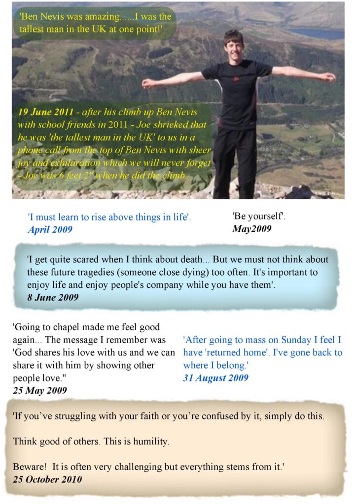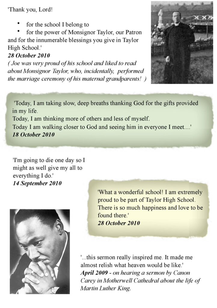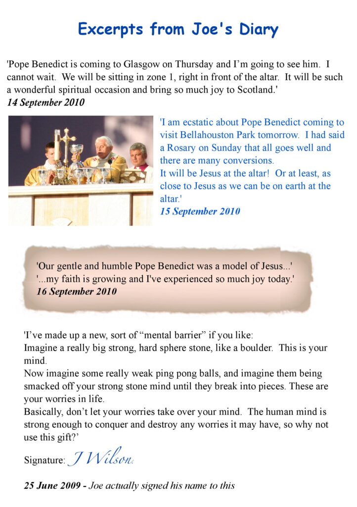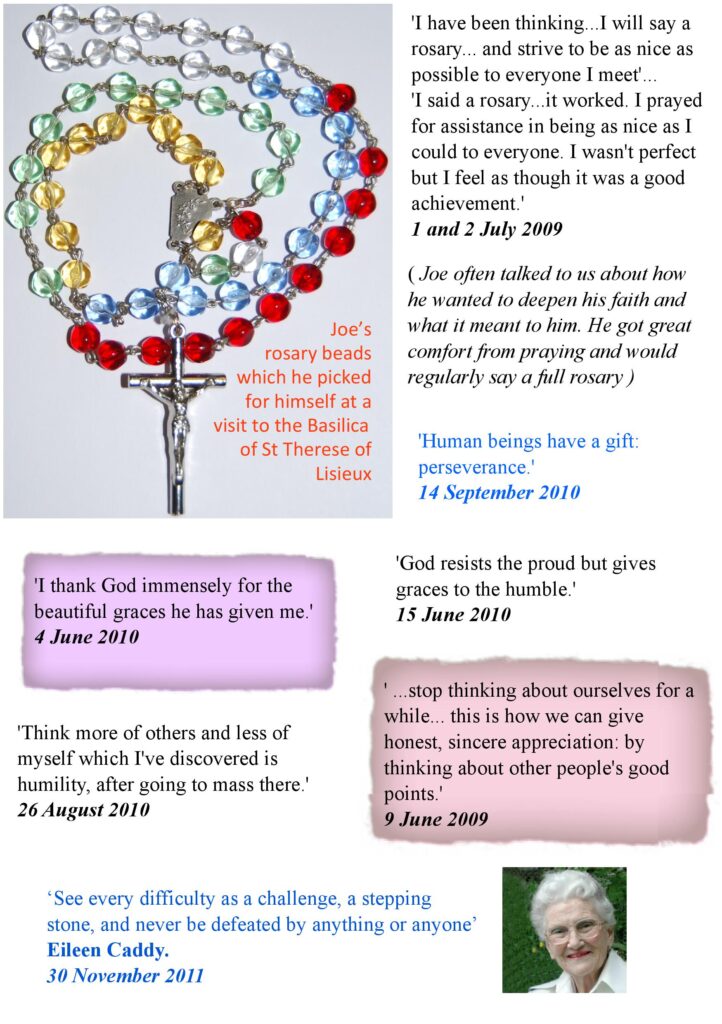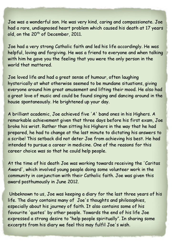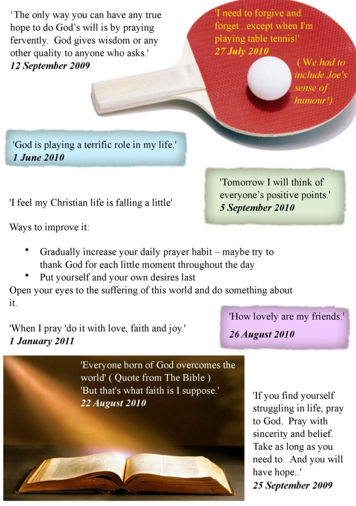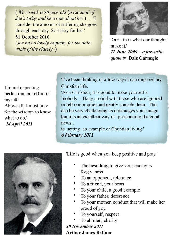 Excerpts from Joe's diary containing many of his thoughts and philosophies, especially about his journey in faith.